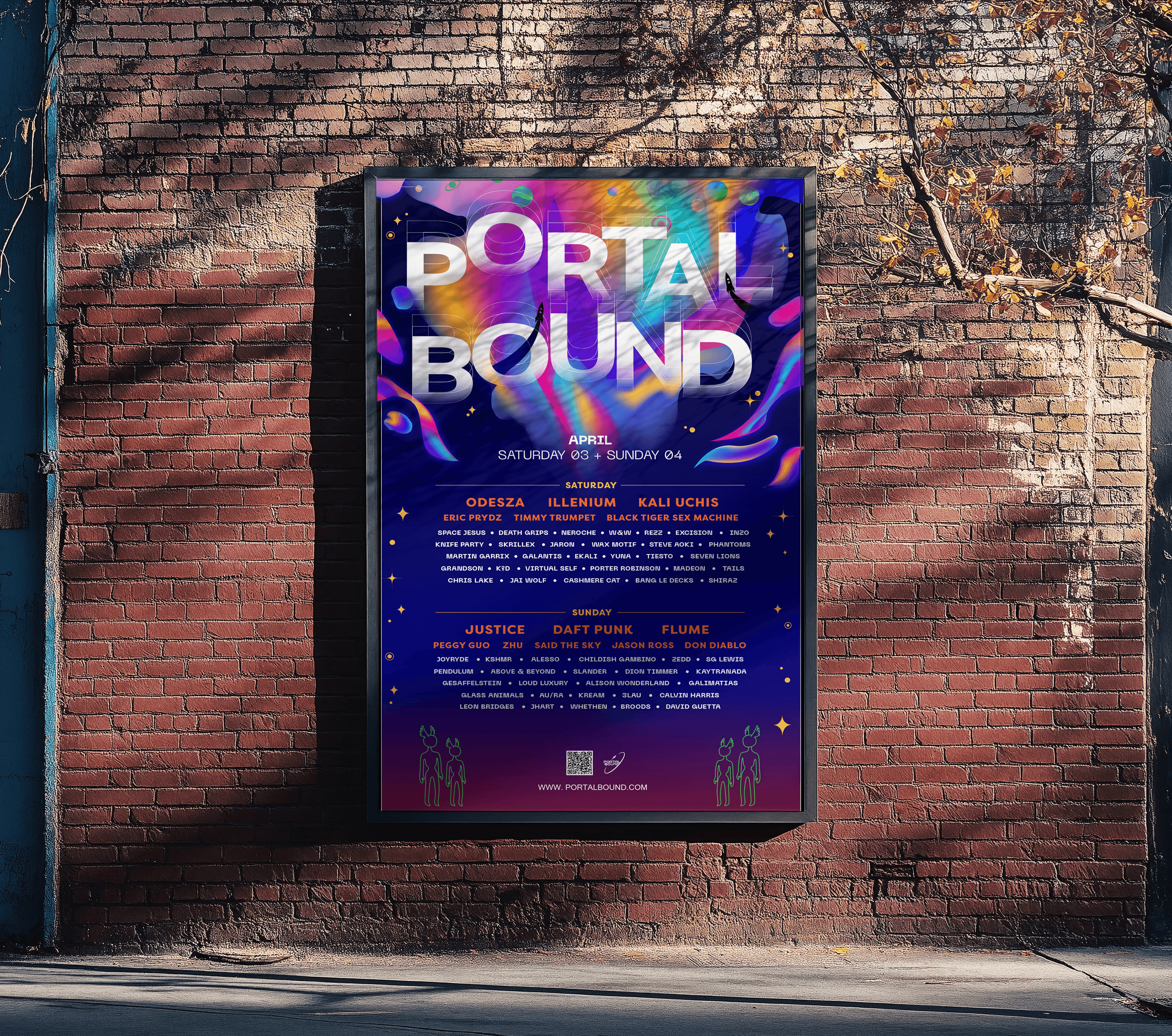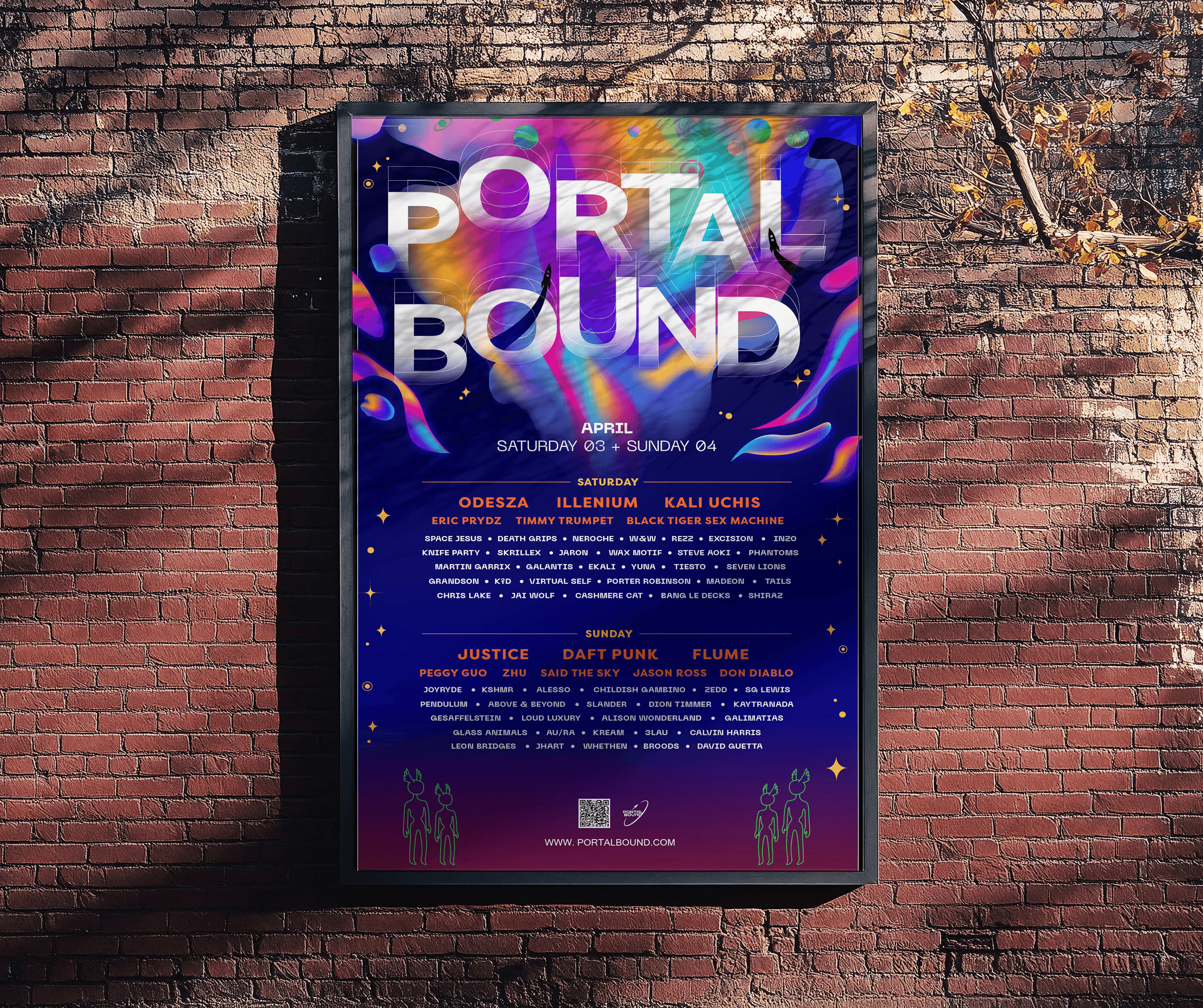 An intergalactic online festival site combining lore, lineup, and comic storytelling with immersive 3D visuals — created as a digital experience for artists and rave enthusiasts.